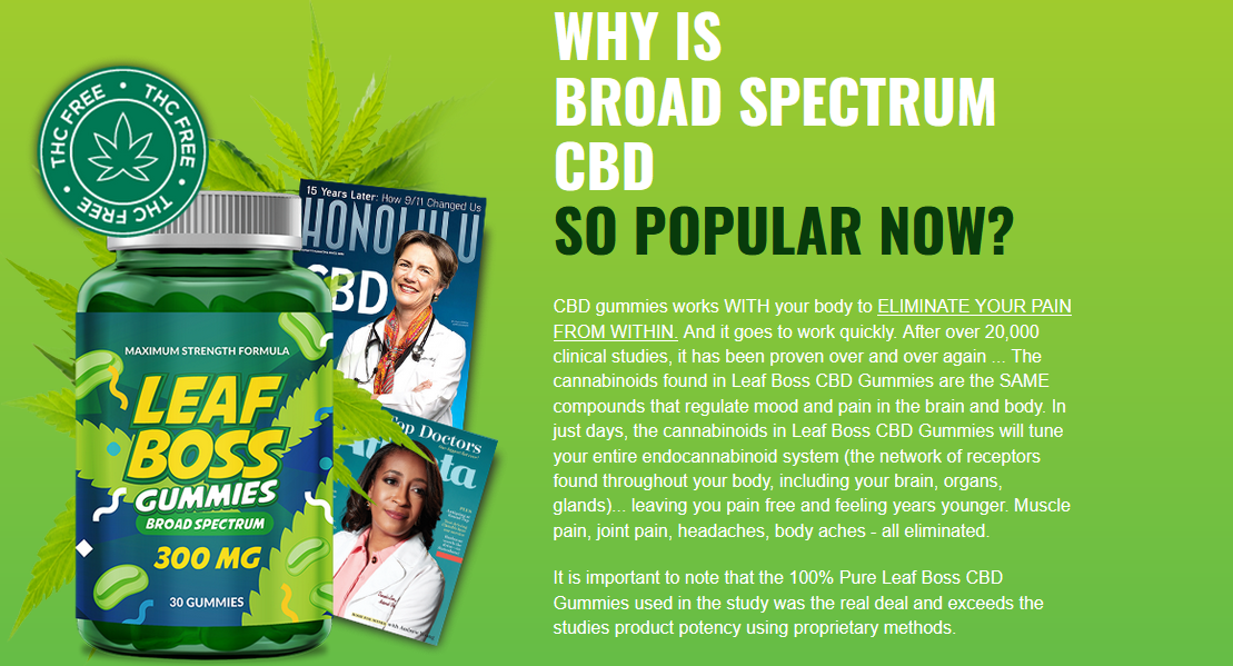 These CBD gummies contain a powerful and flavorful blend of CBD hemp and cannabis safe and pure extract and widely used among people across the world to lessen mental pain, chronic pain, migraine, and etc. CBD is naturally occurring in the Hemp plant And people who are suffering from acute and chronic disorders can experience these gummies’ expertise and versatility in making the entire body pain-free quickly and naturally. CBD Gummies are popularly known to be an effective and pain-killing natural formation of CBD or cannabidiol that is extracted from the cannabis Sativa plant to prepare pain-killing medicines. These are the gummies that the potent and most powerful, and consumers can chew these gummies or candies easily without the need for drinking water. Leaf Boss CBD Gummies are capable of making sure its consumers that they are getting fit and fine with the daily dose along with a healthy diet.